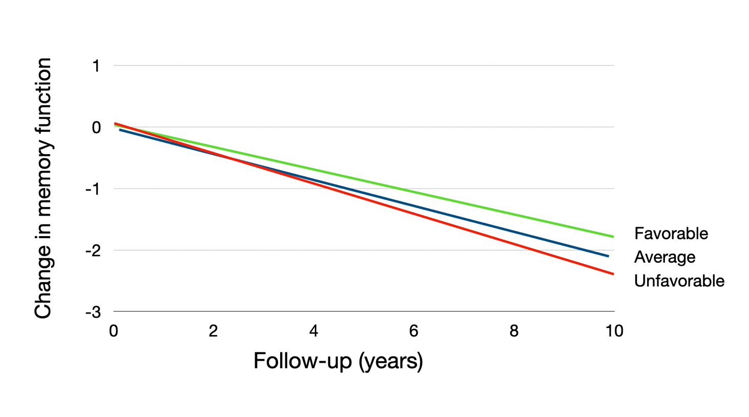 Here’s what the change in memory function looked like over the 10 years in comparison to the lifestyle choices: